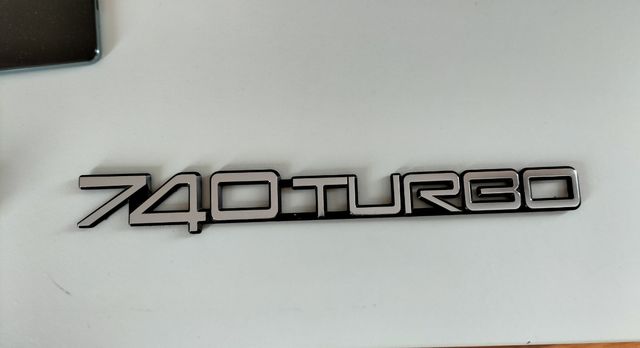 Insignia Volvo 740 Turbo en perfecto estado, muy difícil de encontrar.
