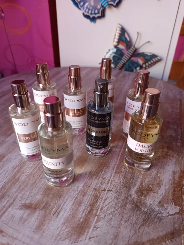 Detalles del productoLote de 8 mini vaporizadores de perfume de la marca Yodeyma, cada uno con una capacidad de 30ml. Ideales para llevar tu fragancia favorita contigo a todas partes.