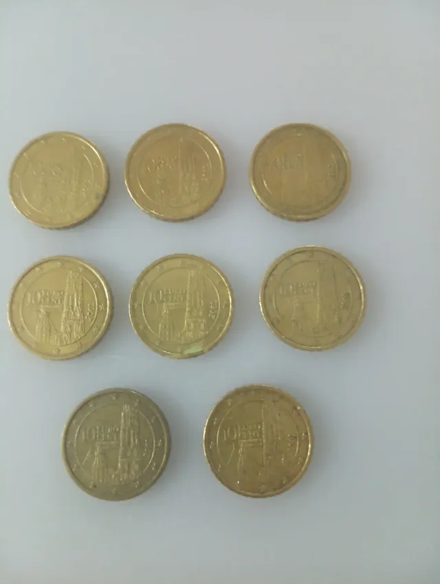 Detalles del productoConjunto de ocho monedas de 10 céntimos de Austria, acuñadas en el año 2002.