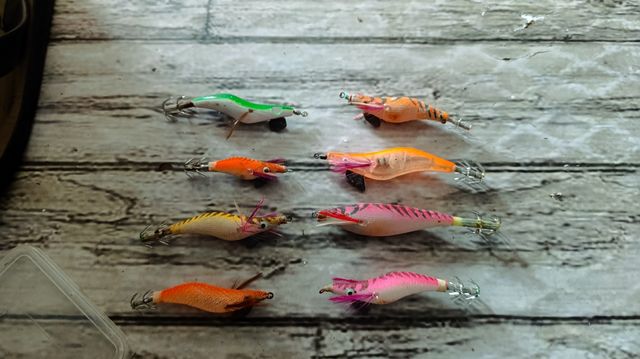 Detalles del productoVendo 8 señuelos de calamar. Son ideales para la pesca. Están en buen estado y listos para usar.