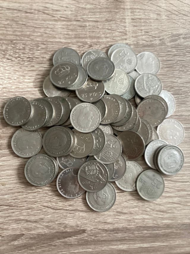Detalles del productoLote de 85 monedas de 25 pesetas de España.