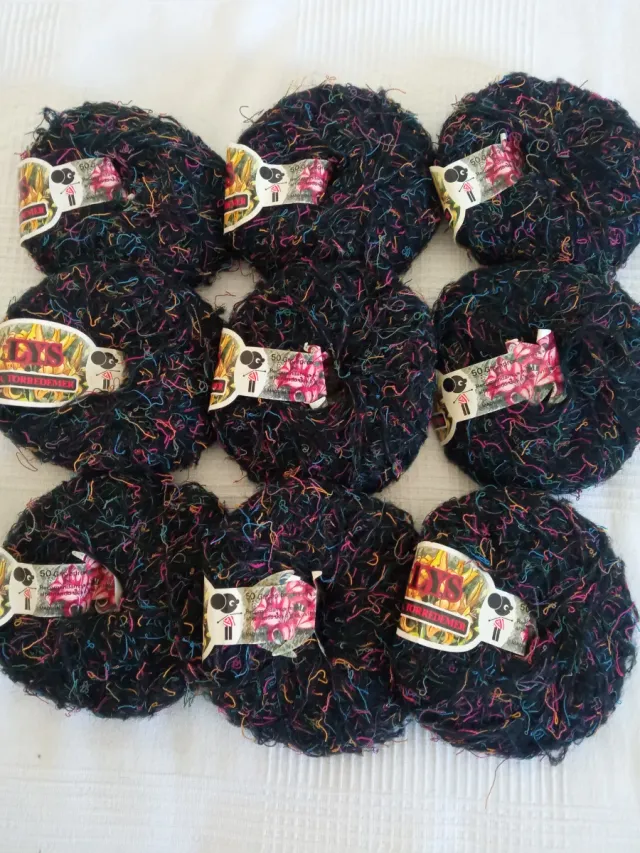 Lote de 9 ovillos de lana Torredemer con un diseño multicolor. - Cada ovillo pesa 50 gramos. - Ideal para proyectos de tejido creativos.