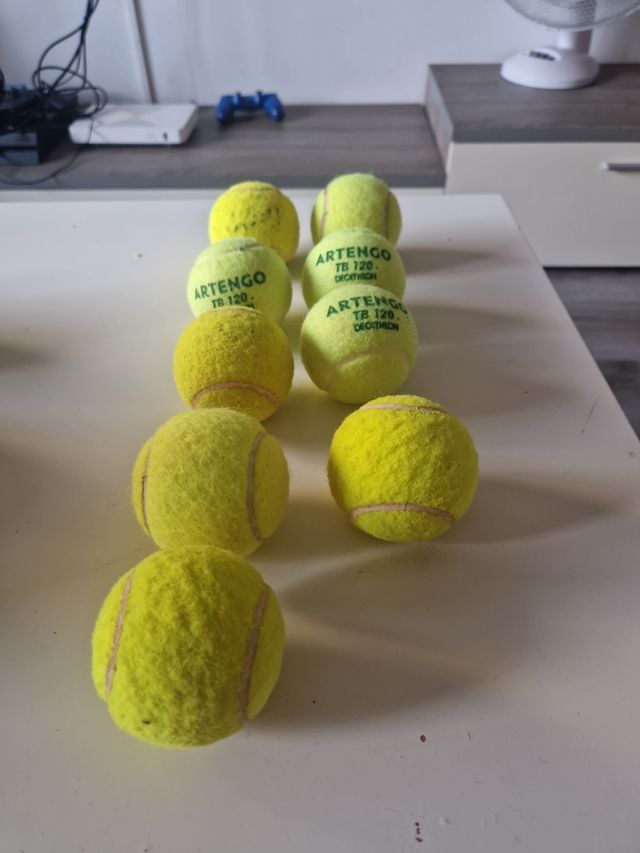 Lote de 9 pelotas de tenis de la marca Artengo, modelo TB 120. - Color amarillo. - En buen estado.