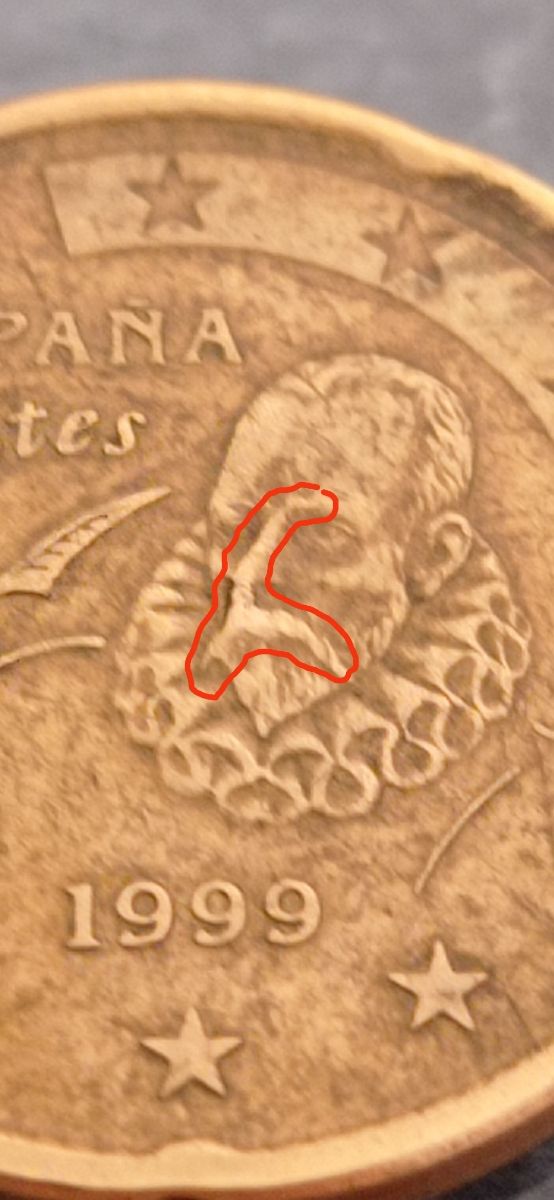 Detalles del productoA115 - Error , Moneda de 20 Céntimos España año 1999 , error de acuñación , bultos o exceso de metal que va desde la Ceja parte dcha pasando por la Nariz y bajando hasta las dos partes del Bigote que tapa hasta la Boca , también la parte izda de la Aguililla no está bien terminada . Nota : todas las Monedas que tengo de 20 Céntimos España del año 1999 son Monedas Únicas no hay 2 Iguales , la Moneda va con su Pátina Natural y en su Cápsula . Para Coleccionistas sobre todo Erroristas .