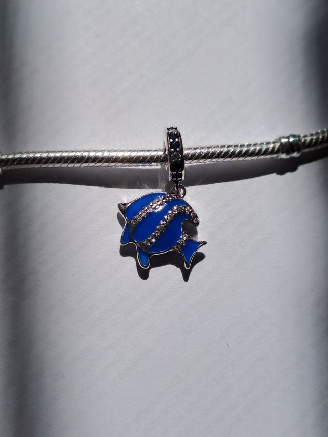 Charm de pez que se ilumina en la oscuridad. Sello de plata S925.