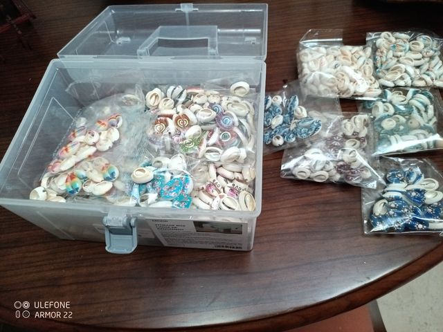 Abalorios de conchas decoradas. Caja completas varias decoraciones