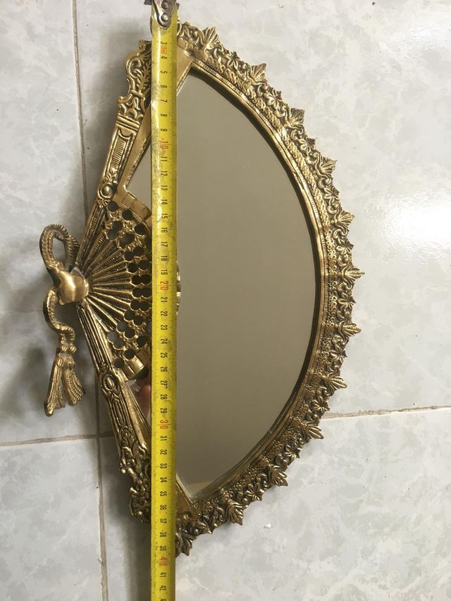 Precioso abanico decorativo con un diseño intrincado. - Material: Bronce y espejo - Estilo: Clásico y ornamentado