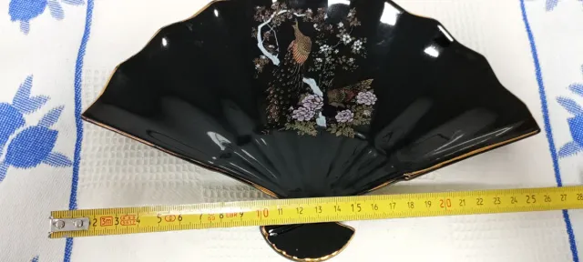 Abanico Decorativo Negro con Pavos Reales