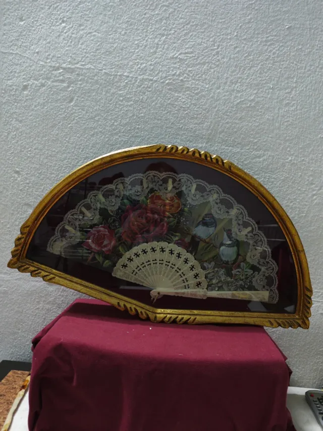 Preciosa abaniquera de madera mide dé alto 32 cm ancho 55 cm y de fondo 6 cm
