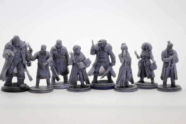 Detalles del productoLote de 8 miniaturas en sustitución de los marcadores contadores de puntuación originales de personajes y de los meeples de Criatura y Capitán del juego de mesa Abominación para mejorar el aspecto visual del juego.