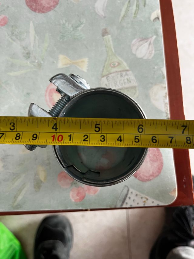 Abrazadera metálica para tubo de escape. - Material: Metal. - Cierre ajustable con tornillo. - sin usar - le falta un tornillo