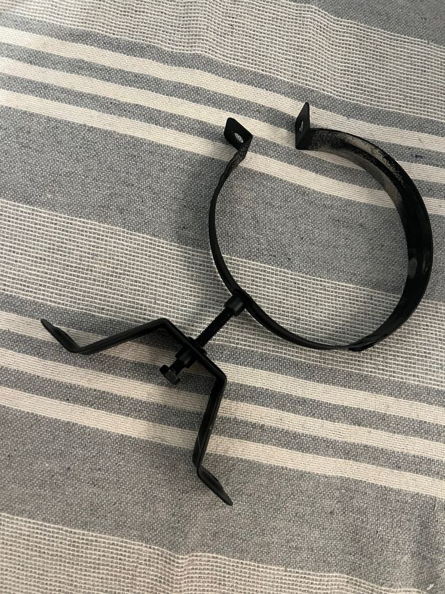 Abrazadera metálica para tubo de pellet de 100mm de diámetro. Se ajusta mediante tornillo. - Material: Metal. - Color: Negro. - Diámetro: 100mm.