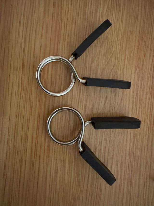 Detalles del productoPar de abrazaderas para barras de mancuernas de 27mm de diámetro. Son de metal con recubrimiento de goma en las puntas para proteger las mancuernas.