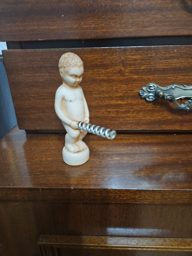 Bonito abrecorchos de estilo vintage. Ideal para cualquier amante del vino. - Figura decorativa de niño. - Material: Resina. - Diseño único y elegante.