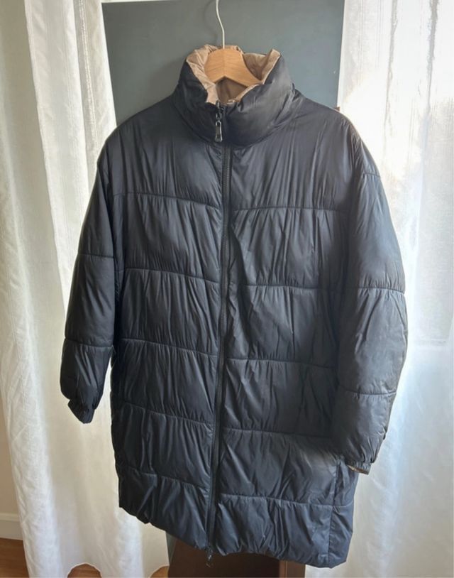 Abrigo acolchado mujer negro y beige REVERSIBLE