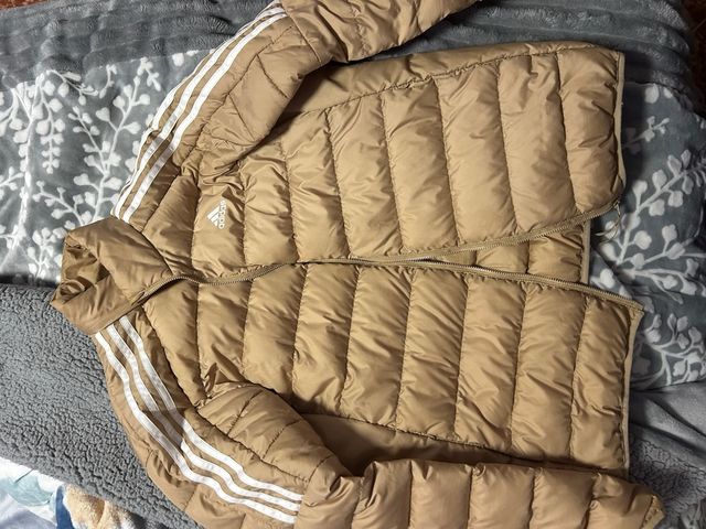 Abrigo Adidas acolchado mostaza con rayas blancas