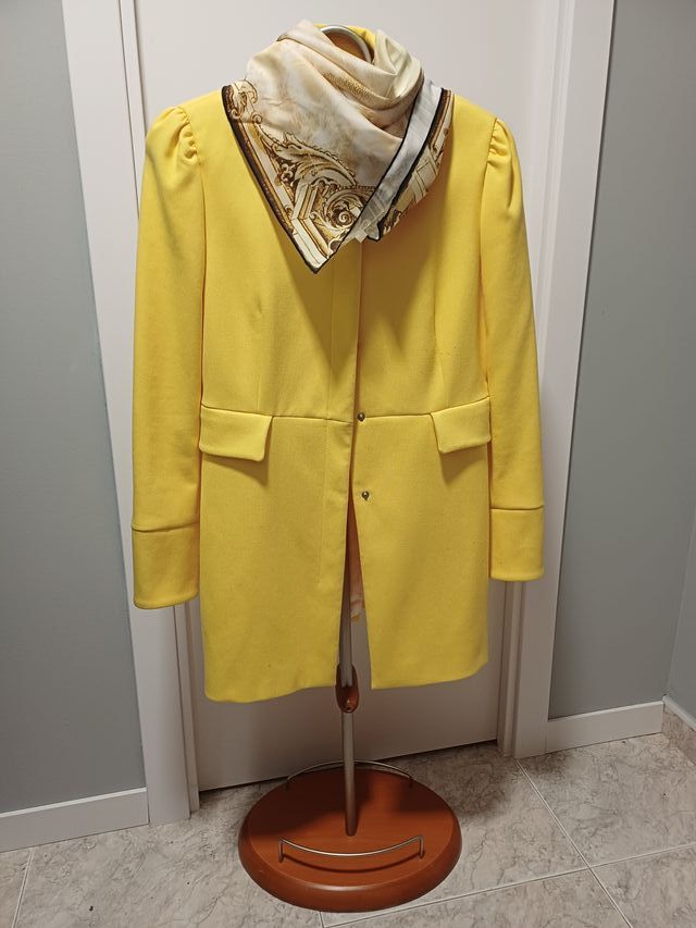Abrigo amarillo con pañuelo estampado