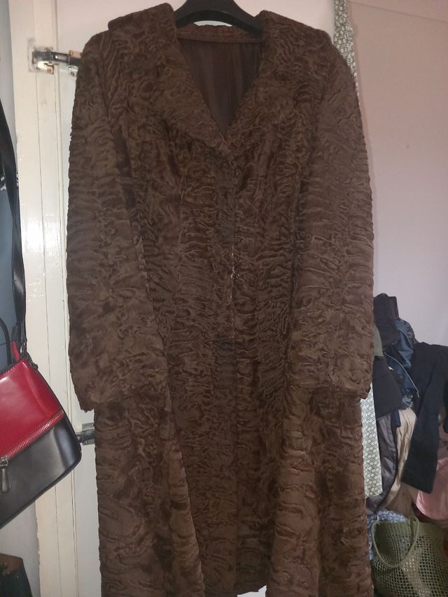 Abrigo Astracán marrón chocolate. Peletería Ubeda.
