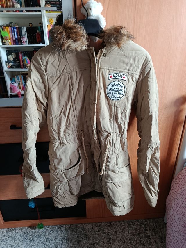 Abrigo beige con capucha