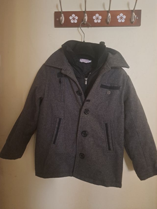 Abrigo sport con efecto doble chaqueta, abajo una tipo sport con dibujo romboide.