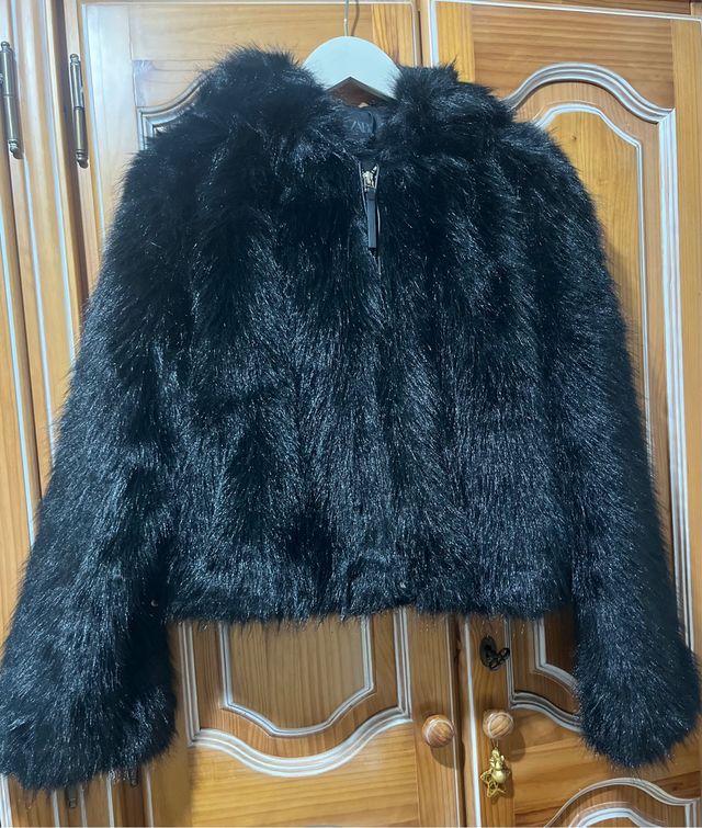 Abrigo corto efecto pelo de Zara
