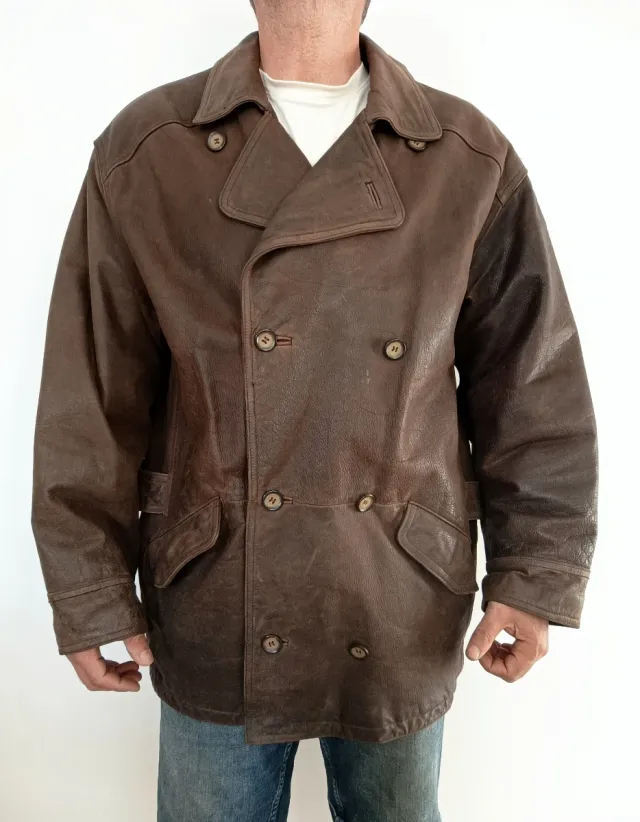 Abrigo cruzado cuero auténtico XL Medidas indicada