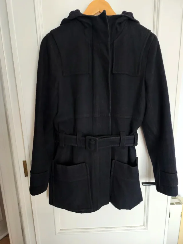 Abrigo de lana negro con cinturón