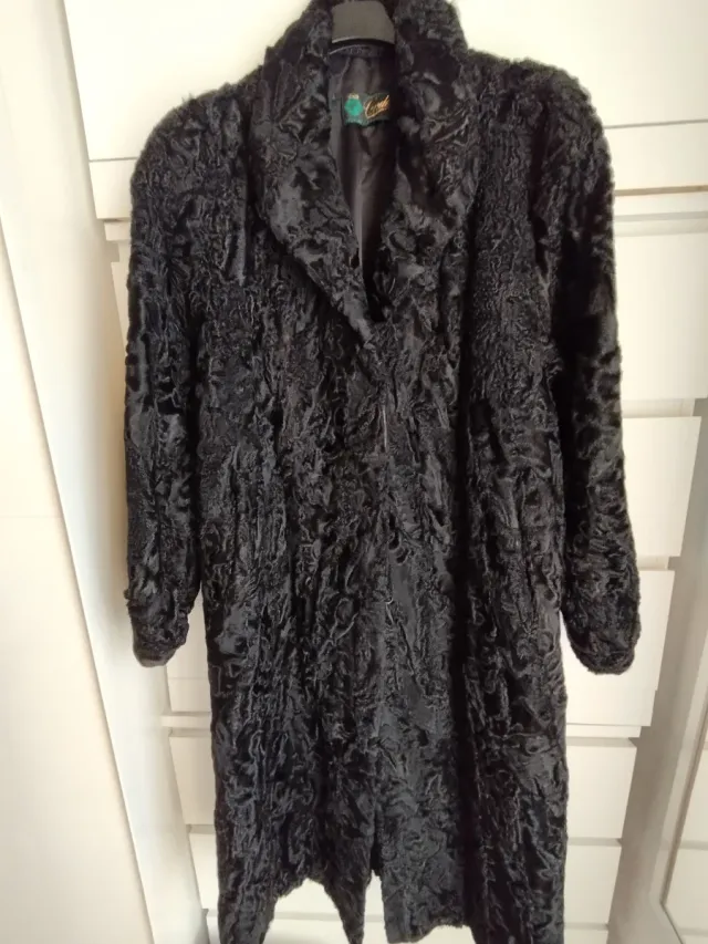 Abrigo de piel de astrakán negro.