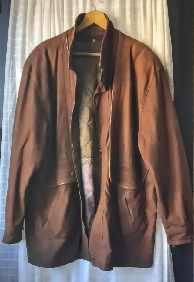 Abrigo de Piel Vuelta Marrón con Cuello piel