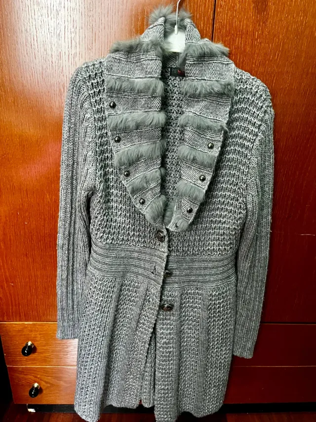 Abrigo de punto con piel sintética