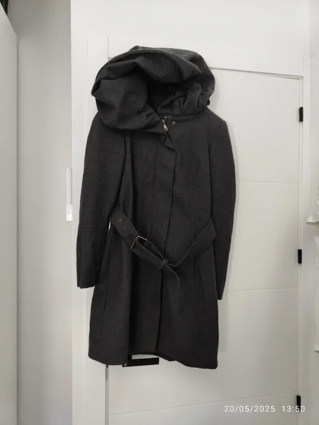 Abrigo gris con capucha