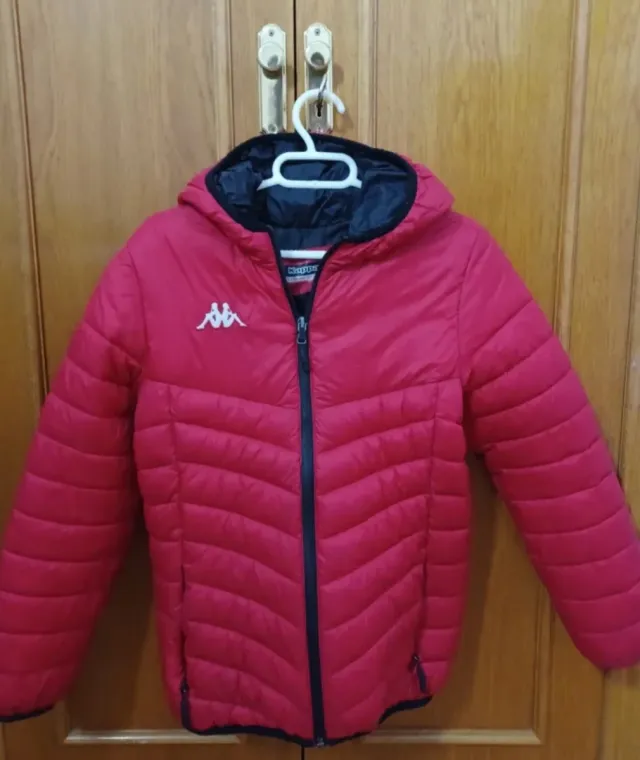 Abrigo ultraligero rojo, no pesa nada y abriga mucho. Capucha integrada. Talla 12 años, 152 cm. Marca Kappa, original.