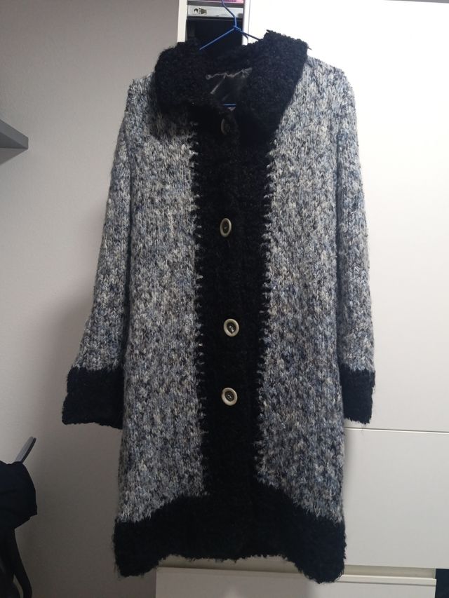 Abrigo lana gris-negro, hecho mano, puesto 2 veces