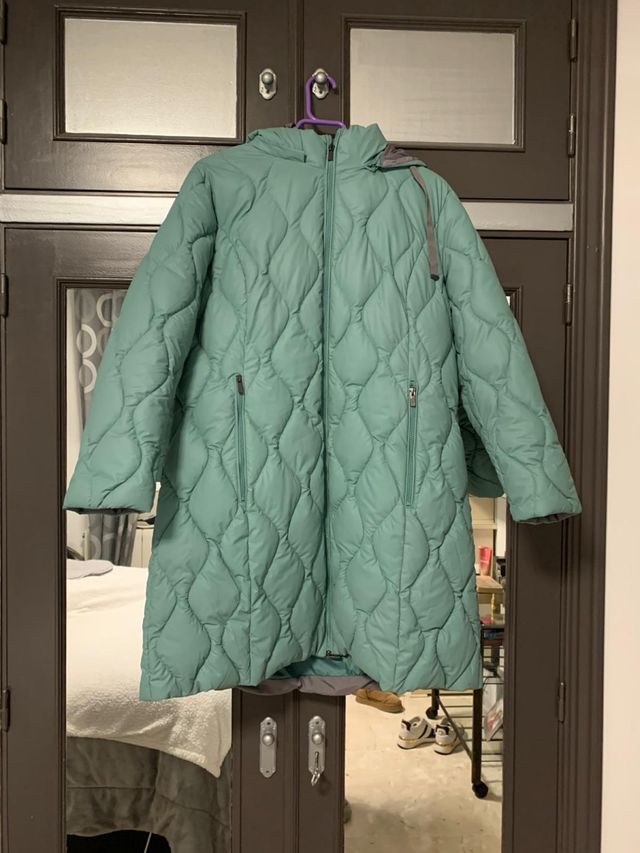 Abrigo largo acolchado verde agua