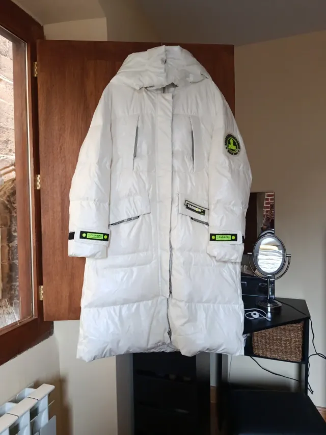 Abrigo largo blanco con capucha