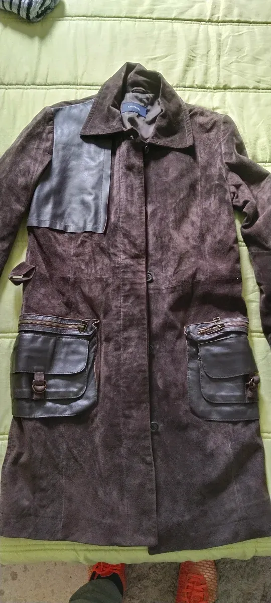 Abrigo largo de ante y piel
