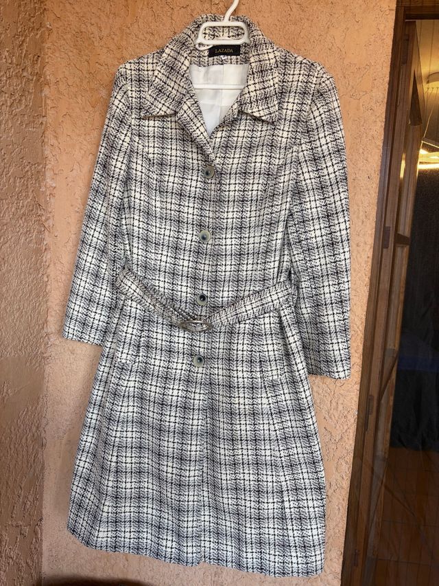 Abrigo largo LAZADA cuadros beige y negro