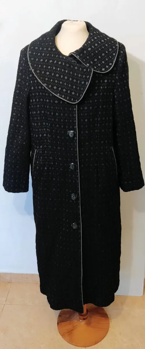 Abrigo Largo Negro Talla M Cuello Peter Pan