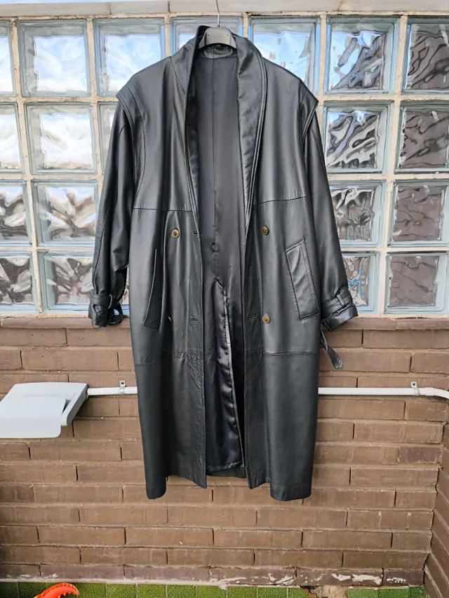 Abrigo Mujer largo vintage de piel negro