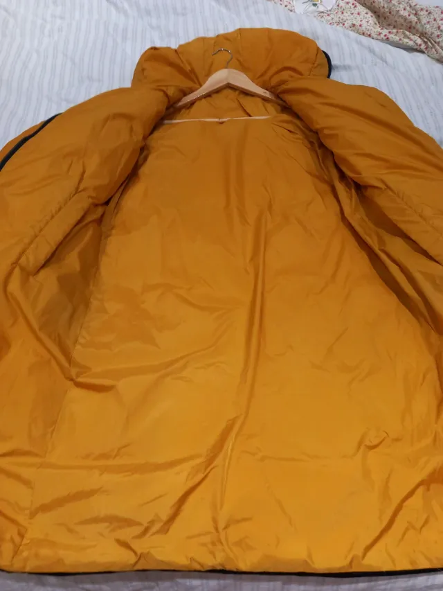 Abrigo largo Zara reversible azul y mostaza