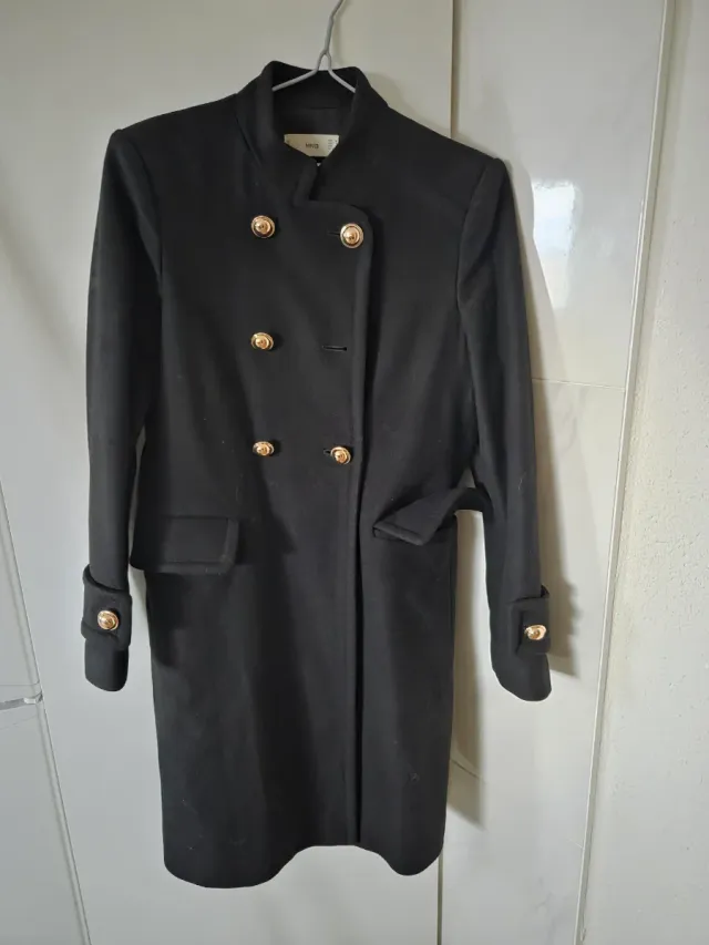 Abrigo Mango Negro Talla M Lana Militar
