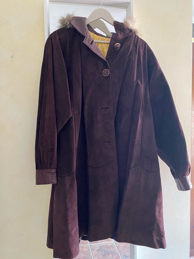 Abrigo marrón de piel/ante con capucha talla 46-48