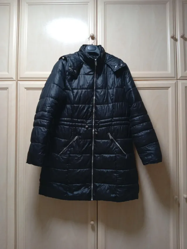 Abrigo mujer negro plumífero con capucha