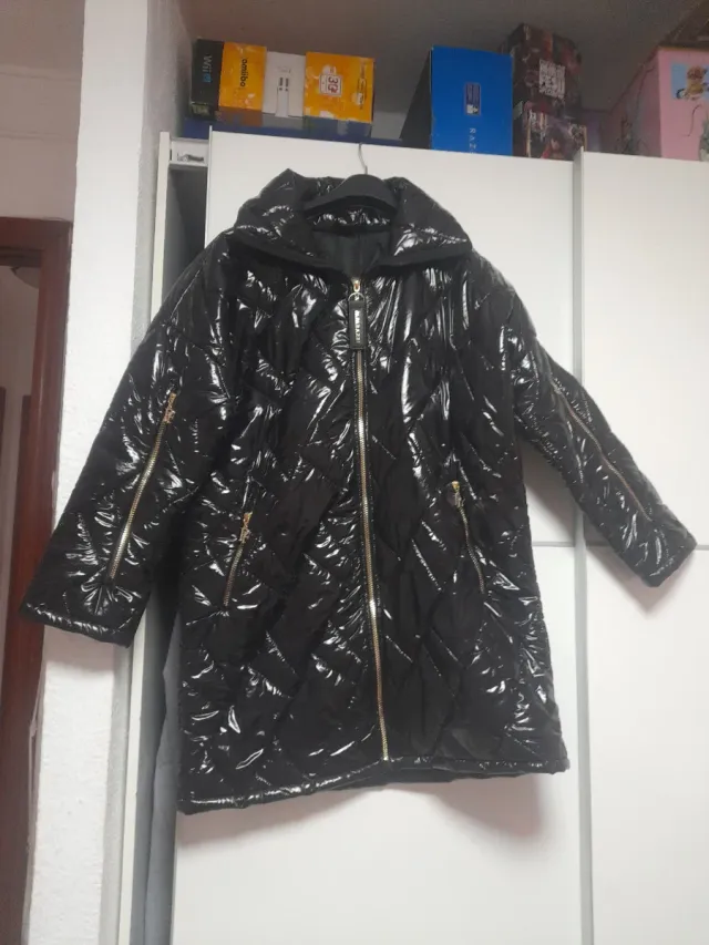 Abrigo negro brillante acolchado