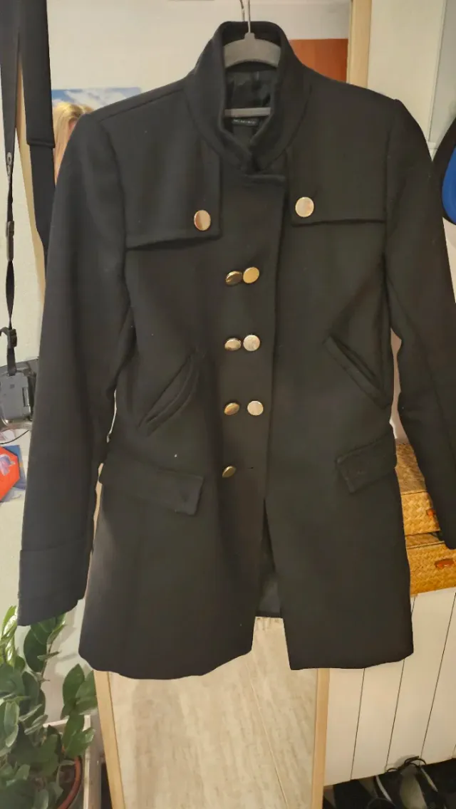 Abrigo negro con botones dorados