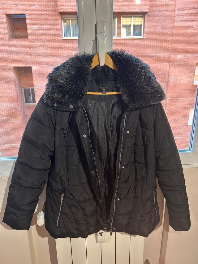 Abrigo negro cuello y capucha desmontable
