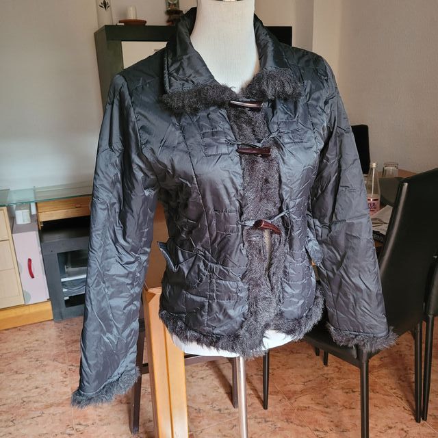 Abrigo negro talla S con botones colmillo