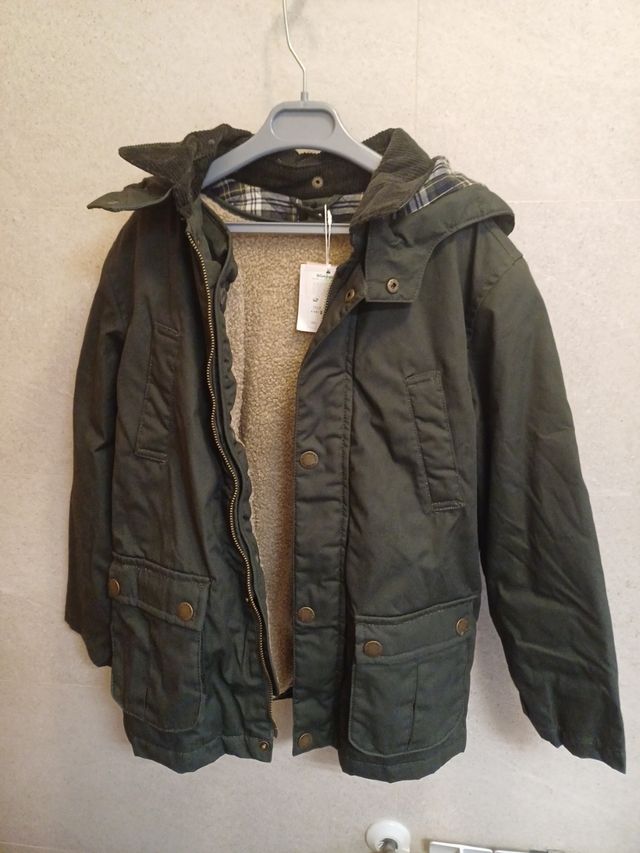 Abrigo niño verde oliva, talla 8 . Tipo Barbour .