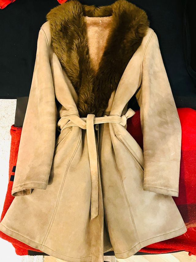 Abrigo Nobuk Beige Cuello Pelo Marrón