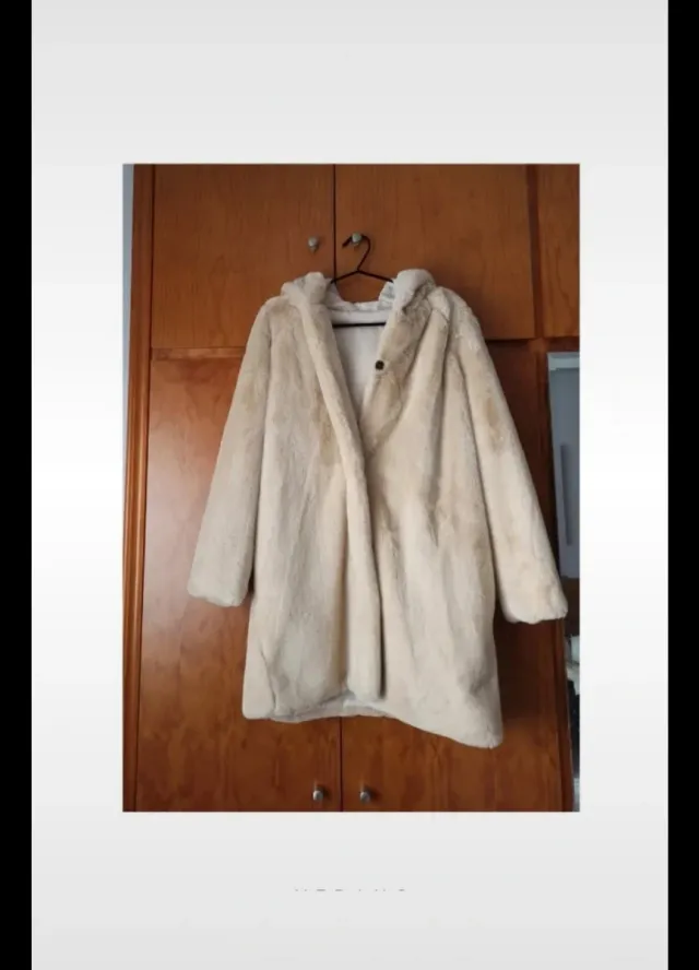 Abrigo pelo sintético color crema con capucha
